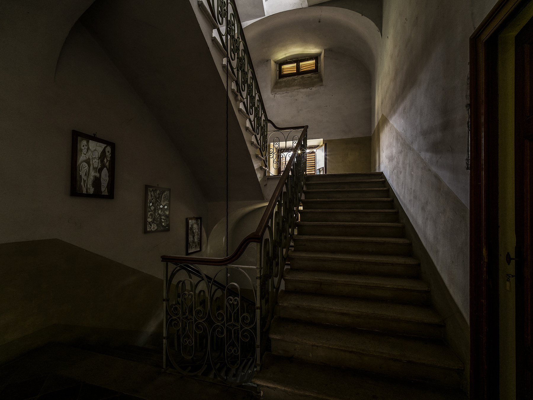 Una scena molto cinematografica, quei quadri sulla sinistra si calano perfettamente nell'ambiente cupo e poco rassicurante.
