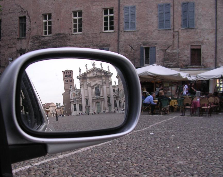 Per fare il pignolo: avrei girato un po' di più lo specchietto in modo che si vedesse meno la macchina e che la chiesa fosse più centrata e magari (ma non so se sia possibile) dritta.