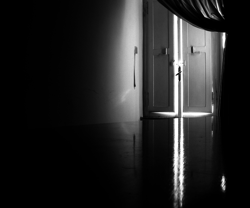 Bellissima anche la parte destra che versa nel buio più totale, bellissima la tenda che crea una ambientazione semplice di grande effetto. Bello anche il riflesso della luce sul pavimento.