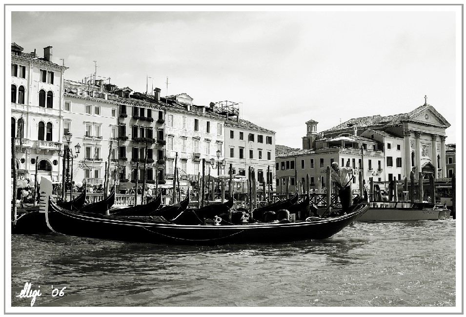 non mi dispiace come foto ma, purtroppo, la gondola con il gondogliere, è troppo vicina a quelle ormeggiate e risulta schiacciata e confusa con esse. Bello il B/W così contrastato!  _________________ ° Vittorio ° www.photovictor.it