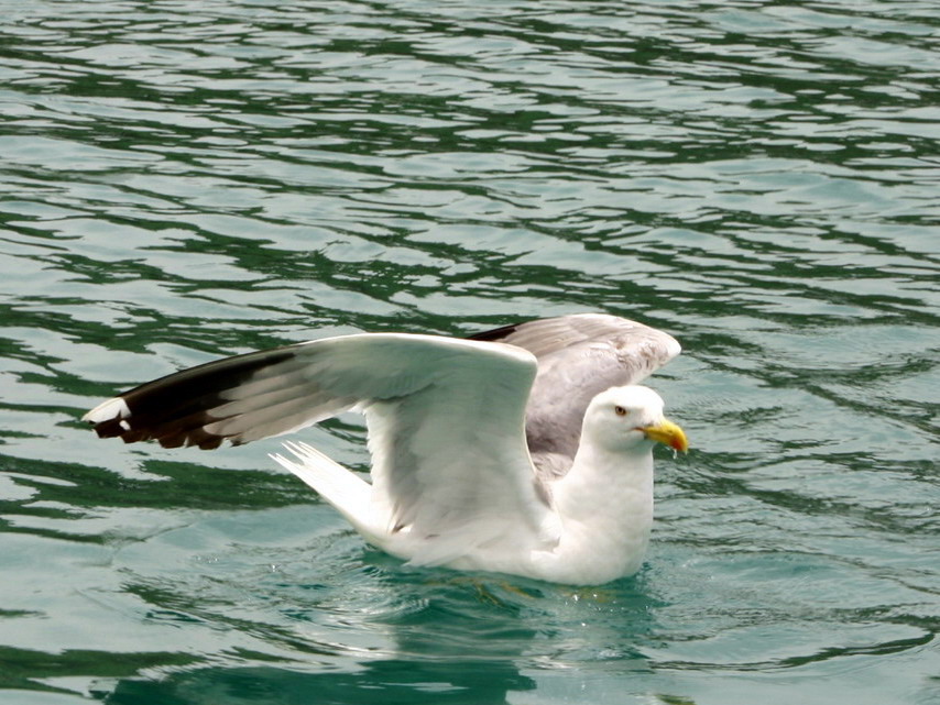terzo: il punto di ripresa. Capisco che eri probabilmente su un molo o su una barca ma la ripresa dall'alto schiaccia un po' il tutto. Se eri su una barca avrei cercato di utilizzare una focale piu' lunga per allontanarmi e minimizzare la differenza di altezza.