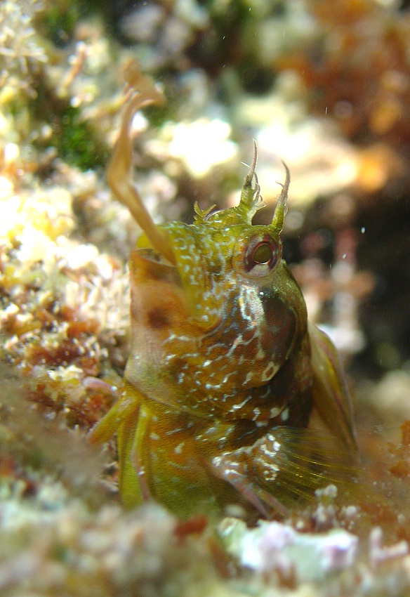 Non scendo sott'acqua da ieri (e neanche dall'altro ieri), ma questa "cosa strana" non l'avevo mai vista: una bavosa in caccia che protende nella corrente la sua appendice orale a mò di esca, per attirare qualche ignaro pesciolino ed inghiottirlo.