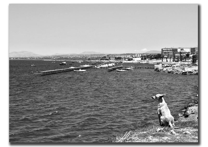 Tra paesaggio e natura, un cane che guarda verso il mare, nostalgia? voglia di evadere da una vita randagia? Emozioni e pensierei umani, chissà........forse non solo.