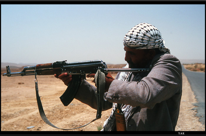Mi pare necessario dare qualche spiegazione in merito, sia agli eventuali "scettici" sia a chi, a mio parere, ha fatto un commento un tantino superficiale. La foto è stata scattata in Yemen, a uno degli uomini della nostra scorta, in un momento di sosta nel deserto. In Yemen le armi sono molto diffuse, un po' come da noi il cellulare, ed è perfettamente normale che i nostri accompagnatori le avessero. La qualità dello scatto poteva essere migliore (vedi le cosiddette "ombre marcate"), ma il tizio non era in posa, dunque ho fatto quello che ho potuto. Il "bersaglio" era un punto indefinito nel deserto, in quanto il tizio in questione sparava solo per divertimento e non per colpire qualcosa o qualcuno, fa parte della cultura di un Paese difficile, che può piacere o meno.