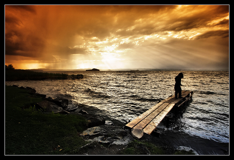 ottima la composizione e i colori... però non mi piace tanto il fatto che hai mantenuto visibili la terra, le rocce e l'erba in primo piano (abbassando sicuramente le ombre) ma hai lasciato nera la sagoma dell'uomo... suppongo non fosse possibile recuperarla.