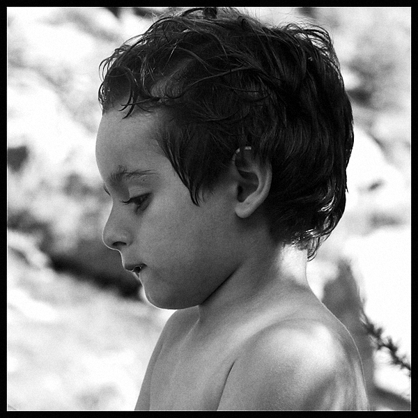 non mi convince moltissimo la composizione: mi sembra che il soggetto sia troppo centrale, meglio sarebbe stato se tu avessi "appoggiato" le sua spalle al margine della foto e lasciato più spazio davanti al bimbo.