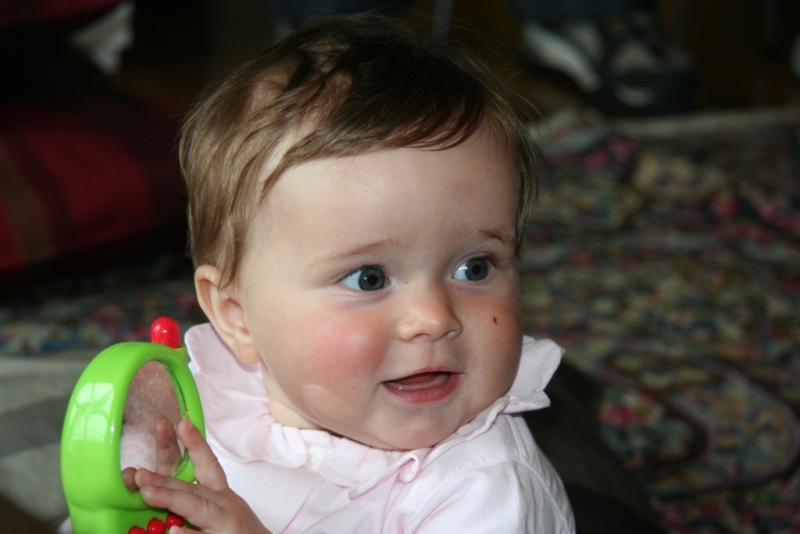 Avrei cercato di fare entrare per intero anche la manina che tiene il giocattolo. Ok che il suo sguardo punta dalla parte opposta ma il verde del giocatto, se il giocattolo non entra per intero, è un po' un flash nel contesto della foto, nel senso che attira prima di ogni altra cosa l'attenzione.
