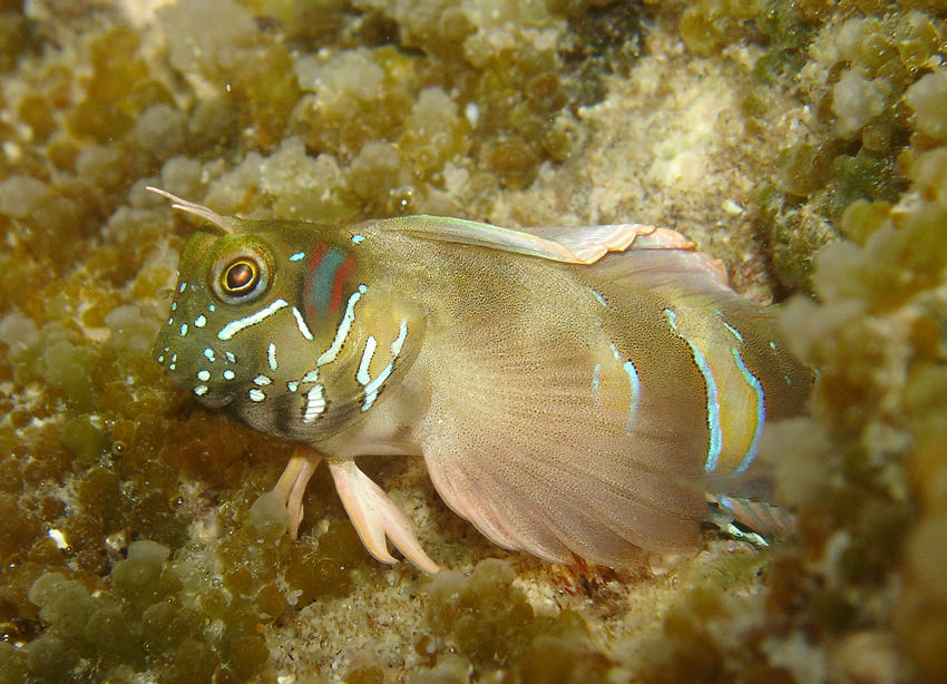 Ho fotografato il pesciolino in uno dei miei acquari preferiti, ovvero il basso Adriatico. Questo pesciolino mi aveva incantato: ve n'erano molti della stessa specie, ma questo era l'unico a sfoggiare questa livrea sgargiante (i colori della foto non gli rendono giustizia), e difendeva il territorio sia esponendo la pinna dorsale che aggredendoli quando si avvicinavano troppo alla sua tana. Credo di averlo osservato per oltre un'ora, e ho smesso non perchè stanco, ma perchè ormai mi aspettavano sulla riva.