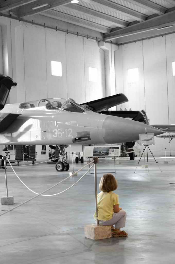 E' stata scattata al museo di Vigna di valle di scatto in un raro momento di "fermo" di mia figlia ! Essendo il Tornato in sottofondo grigio come pure l'hangar ho lasciato in colore solo Sofia. Concordo con il taglio del soffitto ma l'ho postata così com'era.
