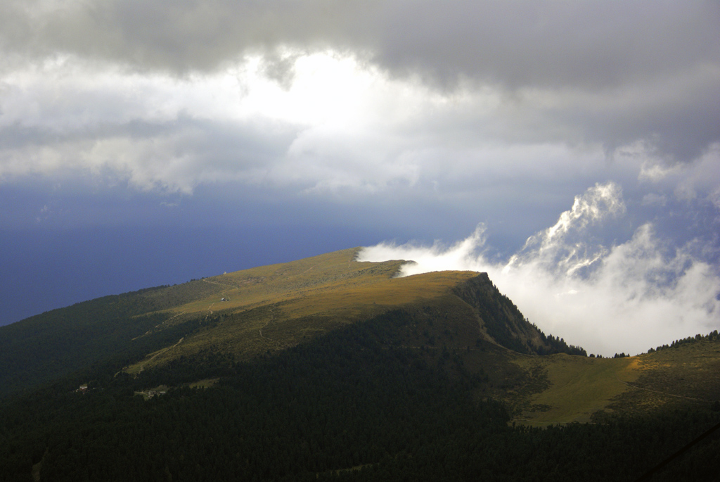 Foto scattata oggi con un vento fortissimo che spingeva la nebbia verso il basso non facendola salire oltre la cresta dell'alpe di Rasciesa!