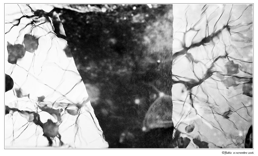 C'e' voluto un po' di tempo per capire lo scatto, credevo fosse un astratto, poi ho capito, forse a colori le foglie colorate avrebbero reso tutto piu' chiaro e comprensibile, sempre che quello fosse l'intento...