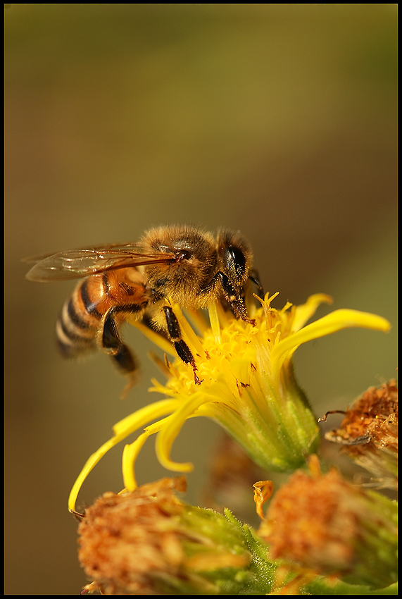 Trovo fantastici i colori dei fiori dei fiori in basso che richiamano perfettamente l'addome dell'ape!