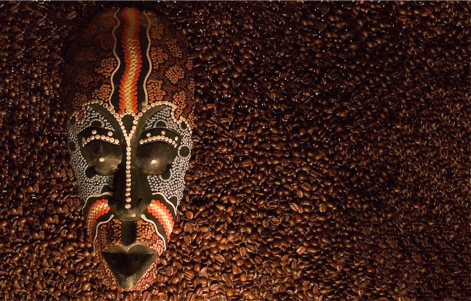 ...la composizione non mi dispiace...e la maschera s'intona con il colore del caffe!...