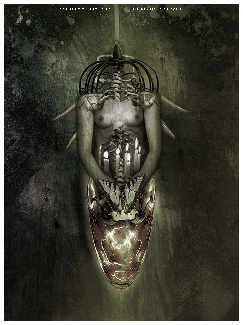 L'immagine nel complesso non mi dispiace ma trovo che la parte centrale non si fonda benissimo col resto (le candele, soprattutto. Ma anche la farfalla ha un'illuminazione che e' poco "coerente")
