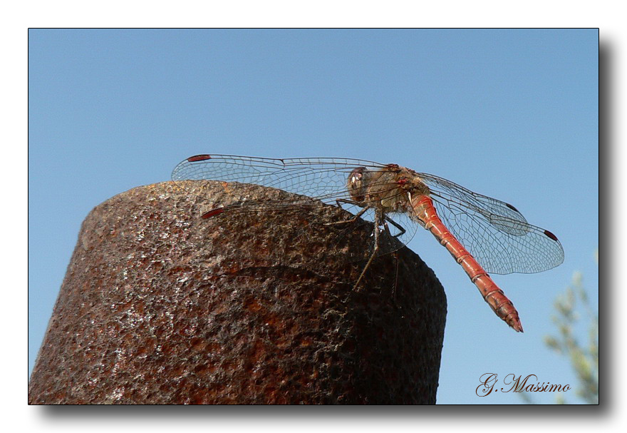 Luciano devi sapere che mi insegue, normalmente le vado a cercare vicino un laghetto, sabato invece vado a Campagna dove non ci sta nessun laghetto, a fianco una casa ci stava un paletto arruginito, mentre guardo vedo posarsi questa libellula, ho preso la macchina e mi ci sono avvicinato, gli ho fatto un casino di scatti e non se ne andava, a quel punto ho passato la macchina a mia moglie, gli ho detto "...prova tanto questa è tranquilla", ...gli ha quasi posato l'obbiettivo sopra ...ed è volata via.....!!!