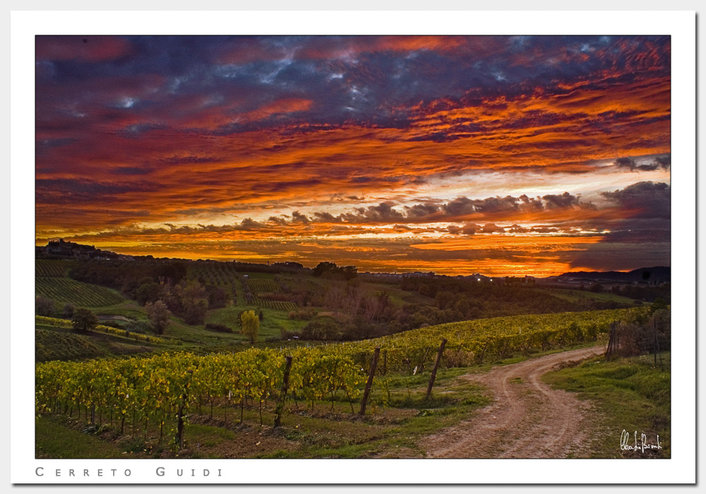 ...il cielo sopra le vigne prende fuoco al tramonto...