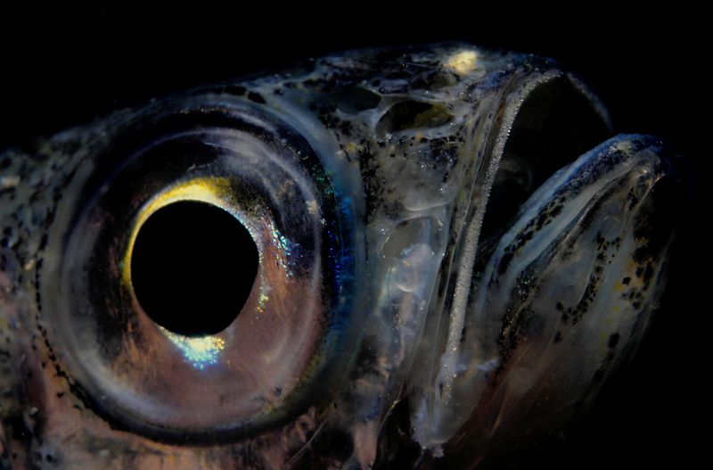 Notare i batteri bioluminescneti nell'occhio (e le ossa semitrasparenti della testa).