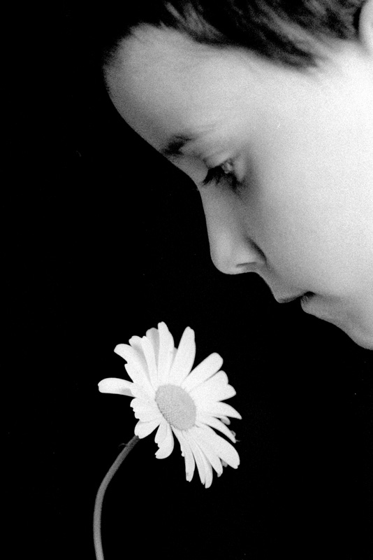 ...Mi piace!...ottimo sfondo che fa risaltare il viso ed il fiore...buona anche la luce...niente da dire anche sulla composizione...