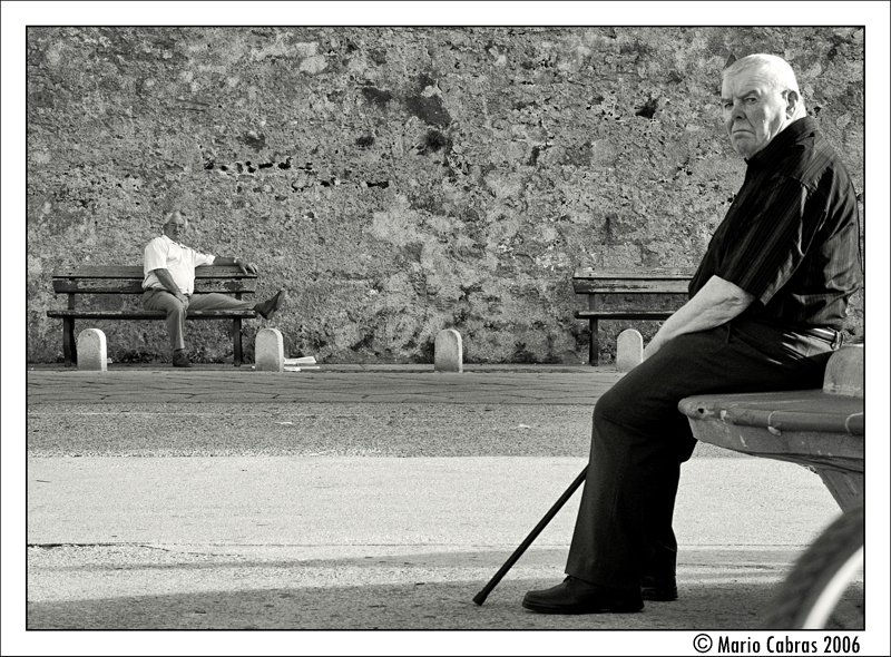 Ottima composizione, ottimo b/n, bellissimo lo sguardo severo raccolto dal fotografo.