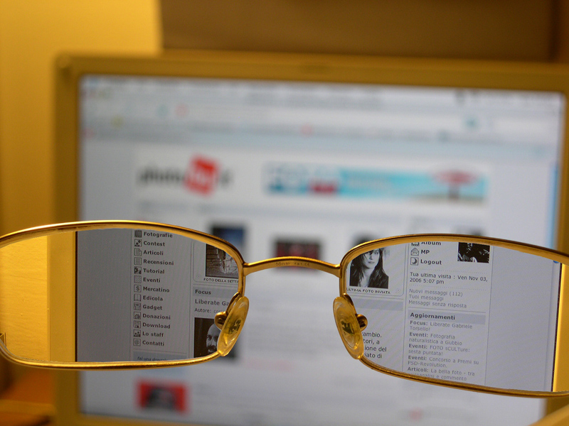 volevo prendere almeno tutta la montatura delle lenti... ma dovendo scattare a 1/8 ho dovuto appoggiare gli occhiali su una struttura un tantino improvvisata (con quadarni ad anelli) e un taglio più panoramico non riuscivo a farlo (si vede gia un intrusione in basso a dx di cui non mi ero accorto