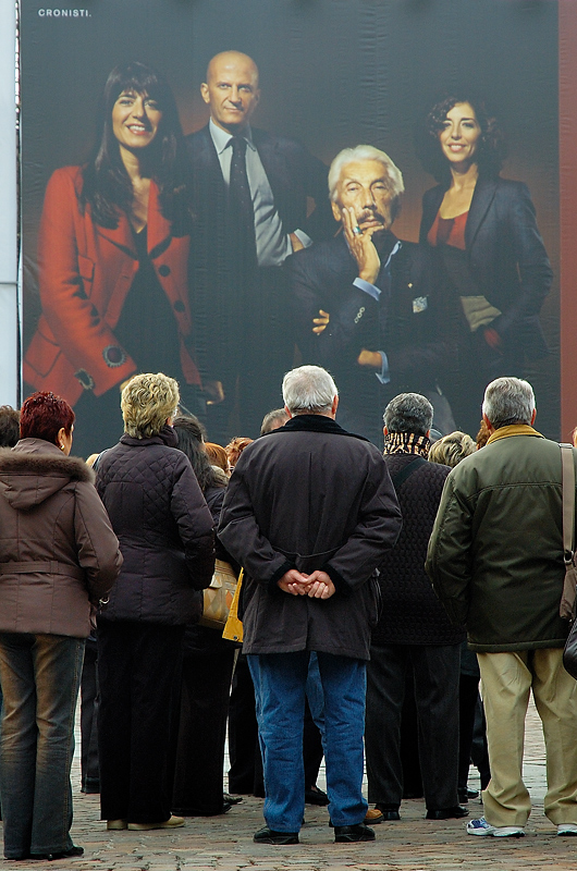 Mi piace la tua proposta, anche se nella composizione preferisco la centralità del personaggio con le mani dietro la schiena, che corrisponde alla centralità del gruppo sul manifesto.
