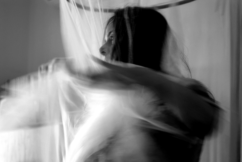 Molto bella, la nuvola del velo mosso mette ancora più in risalto la quasi fissità del volto...