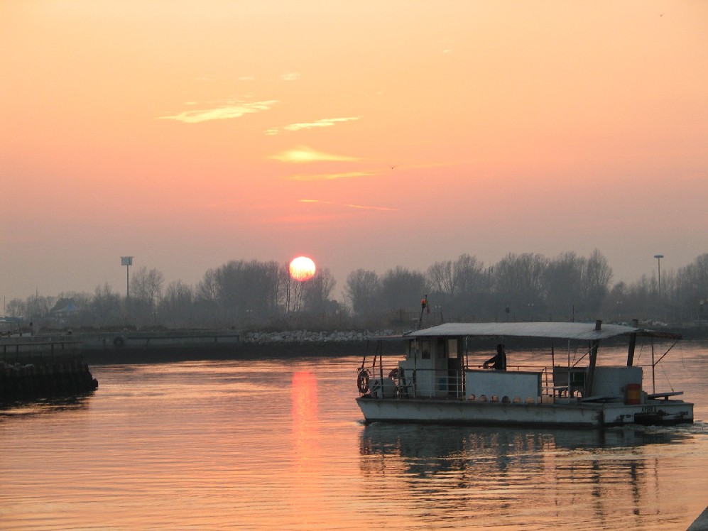 bel tramonto, originale, peccato per quel pezzo di barca tagliata.