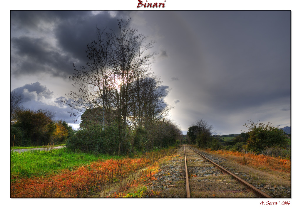 ...e io mi associo ai complimenti degli altri...BELLISSIMA...soprattutto i colori della vegetazione che "circondano" i binari, e la luce del sole dietro le nuvole, dietro i rami dell' albero....bravo!  _________________ Konica Minolta dynax 7D