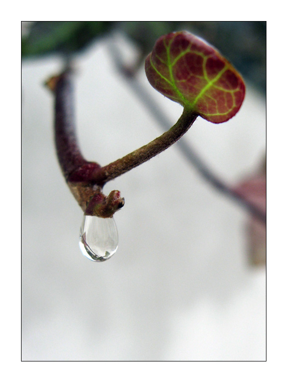 anche la y non è ripresa frontalmente, ma da 3/4, con un ramo sfuocato che porta lo sguardo il primo piano e l'altro che lo conduce alla goccia ben decentrata.