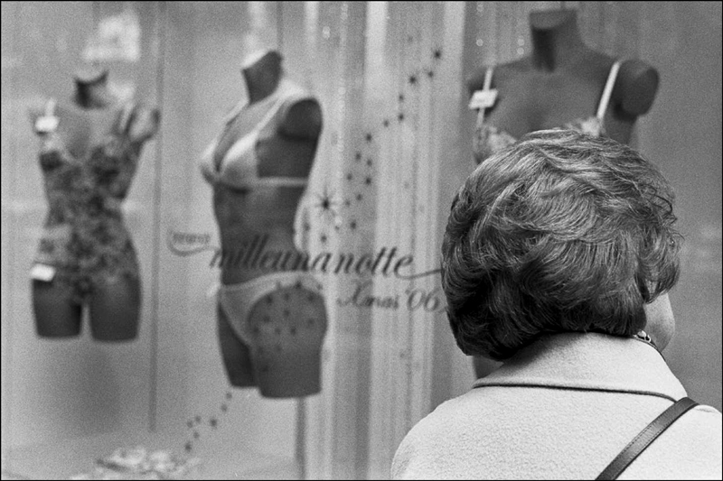 Il colpo d'occhio c'è, però ho qualche perplessità sull'efficacia del messaggio, principalmente per la posa della passante che sembra essere rivolta altrove con lo sguardo e non verso la vetrina, che rappresenta la fonte di ispirazione della sua scelta (almeno secondo quella che è la mia interpretazione dello scatto).