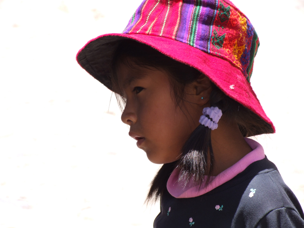 Mi piace il taglio ed il contrasto del coloratissimo cappello con i colori della bimba ...