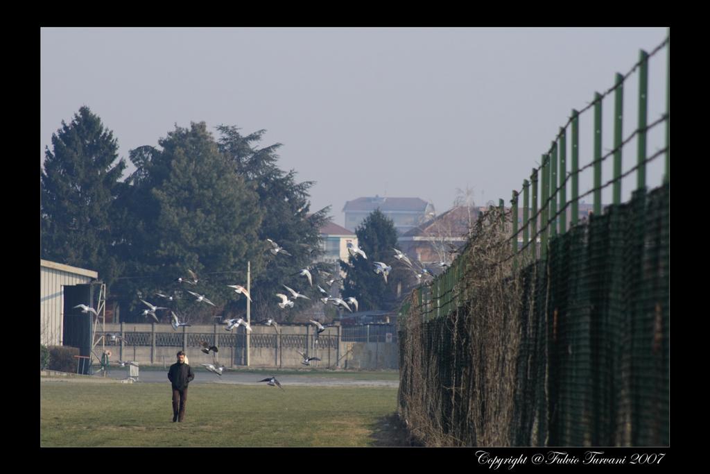 Premesso che accetto i consigli... sfondo e colori... grigi, sono quelli della periferia di Torino. Un po' di malinconia è voluta. Piccioni e persona nella mia intenzione originale ( che evidenemente non sono riuscito a trasmettere ) sono quasi un unico soggetto... una causa effetto... la prima avanza e fa volare via i secondi. Ne ho un altra (era una sequenza) con i piccioni a terra e a me non dice molto.
