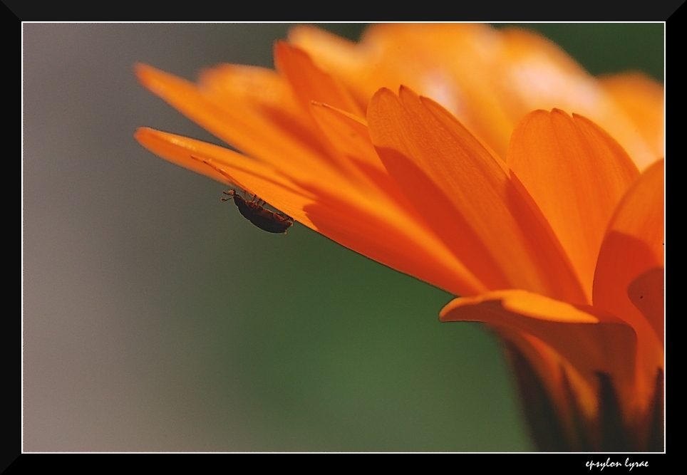è uno scatto molto delicato, che mi colpisce per i suoi colori e la composizione ben bilanciata tra spazi pieni e vuoti. lo sguardo segue il rofilo del fiore e si posa sul suo ospite.