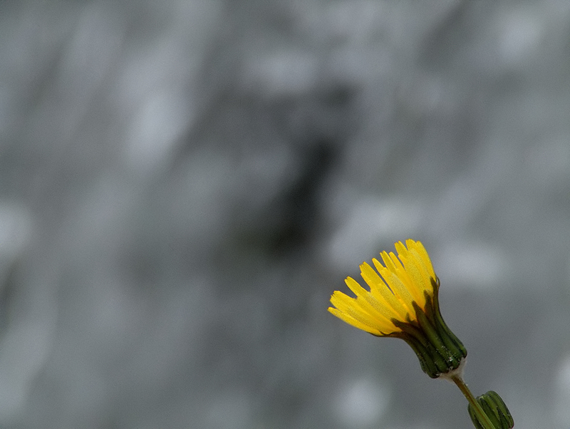 il giallo saturo del fiore sullo sfondo grigio "triste" mi ha fatto pensare alla "speranza di una nuova piccola vita che nascendo spazza via il grigiume della tristezza"