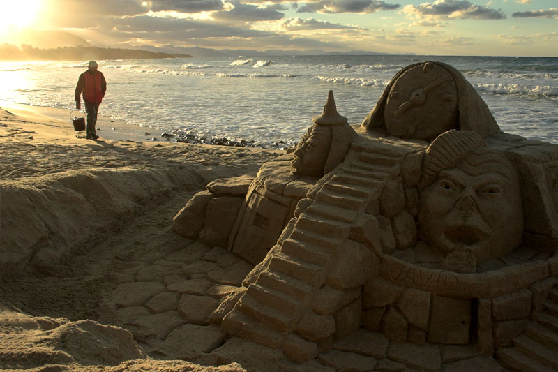 La trovo estremanente suggestiva, però avrei eliminato la presenza umana,concentrando l'interesse sull'enigmatica scultura di sabbia.. Mon mi disturba,anzi, la bruciatura in alto a sinistra: amplifica il senso onirico. Foto a mio parere molto bella,complimenti.  _________________ .. comunque, continuo a pensare che l' unica cosa che con certezza sappiamo della vita, è che non sappiamo cos'è ..