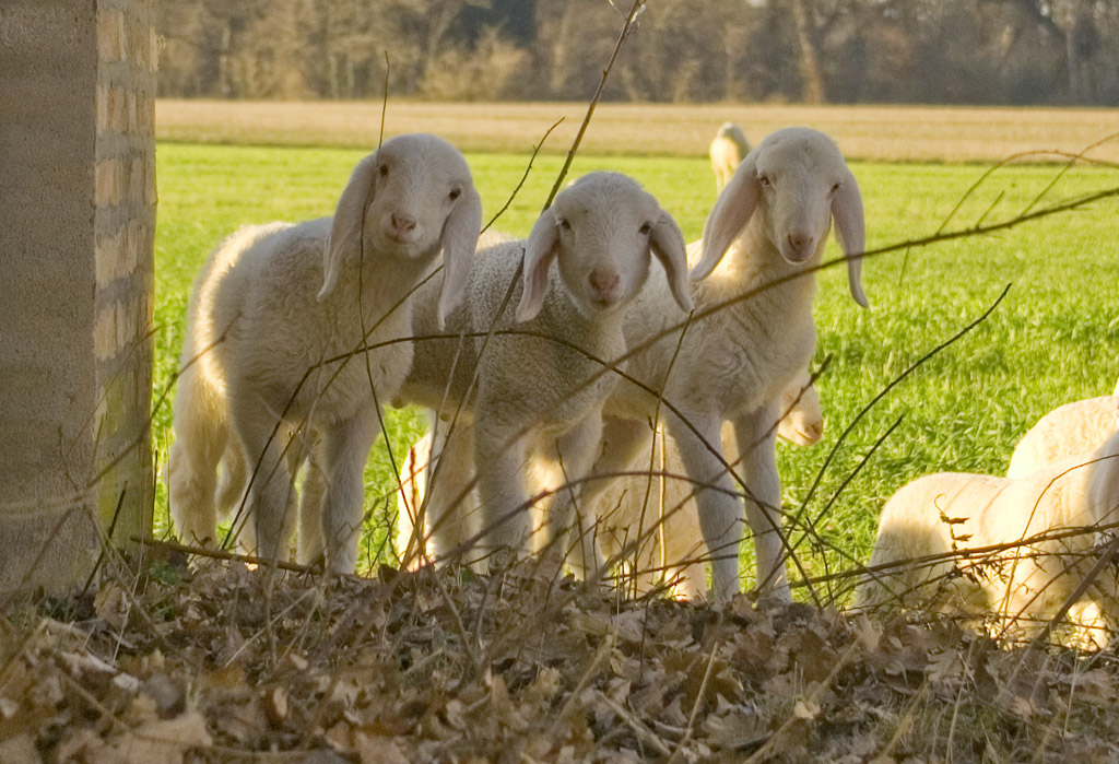 Che dolci questi agnellini Quello in centro ti sta mandando un bacino.