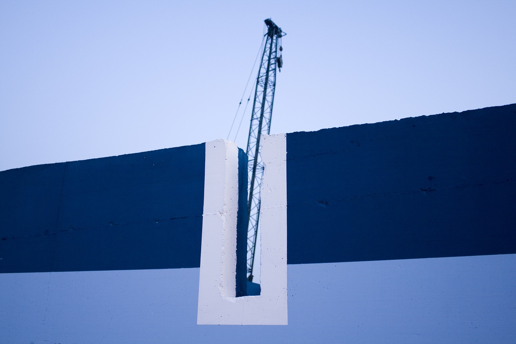 premesso ke ritengo il tuo intento fosse quello di presentare la gru (simbolo del lavoro) attraverso la "feritoia" del muro, accompagnando il tutto dalla combinazione cromatica secondo me piacevole.