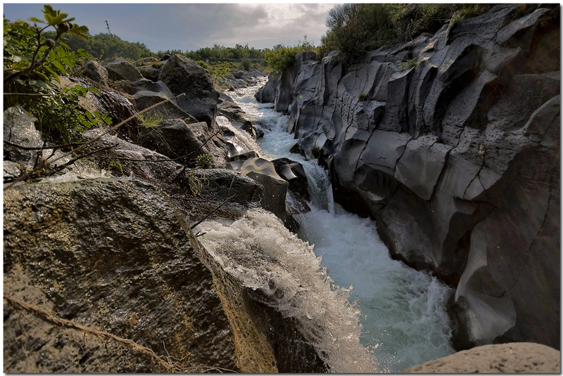Il fiume Alcantara scava il suo letto nella roccia lavica.