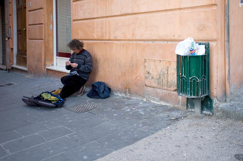 Il soggetto è uno dei classici personaggi che vivono la strada e come tale rappresenta un interessante protagonista per una foto 'street'.