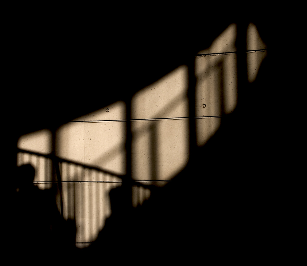 La fortuna non ha aiutato l'occhio attento ad individuare le ombre che si stagliavano contro il muro. La luce sul muro e le sagome in essa disegnate, seguono la diagonale ascendente, ma salendo si trova poco o nulla, anzi l'elemento di maggior interesse è collocato proprio in basso a sinistra. Se lo scatto fosse speculare lo sguardo avrebbe percorso il riflesso da sinistra a destra per poi trovare le sagome dei due protagonisti. Non potevi certo cambiare la scena (puoi provare a ruotarlo orizzontalmente in PW ovviamente), mentre, forse potevi cercare di curare ancor meglio le sovrapposizioni, aspettando il momento in cui una delle figure si fosse trovata perfettamente disegnata in una delle due sezioni rettangolari (dò per scontato che si tratti di due persone).