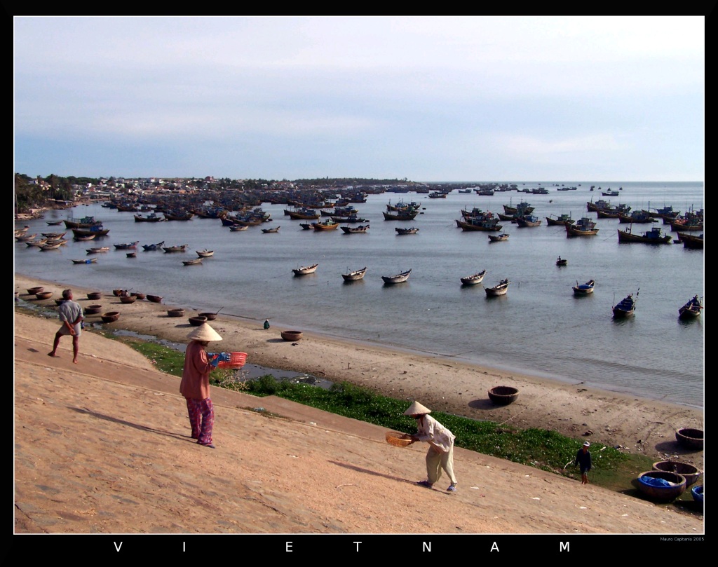 Raccoglitrici di pesce essiccato in un villaggio di pescatori nel Vietnam centrale. _________________ Lumix FZ 82 |