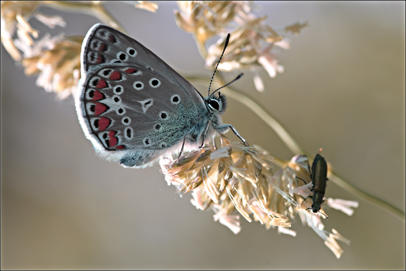 Ottima la composizione con la diagonale formata dal ramo su cui è posata la farfalla. Belli i colori della farfalla e ottima la maf. L 'altro insetto è la classica ciliegina sulla torta ciao  _________________ td.1867 = Toso Davide * NIKON & SIGMA