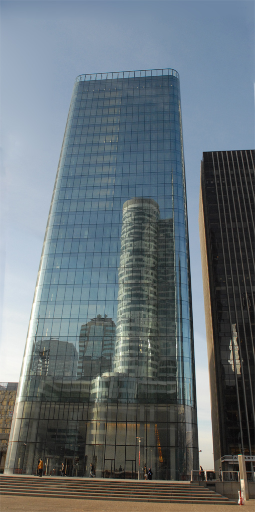 ciao marcolino, faccio un piccolo preambolo...in architettura bisogna vedere-osservare-pensare a cosa valorizzare di ciò che osserviamo.Io addirittura avrei inclinato di più, perchè la foto ha dedlle potenzilità ottime, il riflesso poteva essere valorizzato meglio eliminando tutta una serie di disturbi che, purtoppo ci sono sempre, come l'edificio di fianco, lo so che non si può "s"cancellare ma bisogna insistere sulla focalizzazione di un dettaglio e giudare l'osservatore. in questa foto l'occhio è distratto da un po' troppe cose, e bisognerebbe intervenire sul taglio. magari è anche superfluo vederlo tutto l'edificio, ma uno scorcio-un dettaglio avrebbero individuato meglio la tua idea di grattacielo dentro al grattacielo. giocare con le geometrie e le linee aiuta a guidare l'occhio...