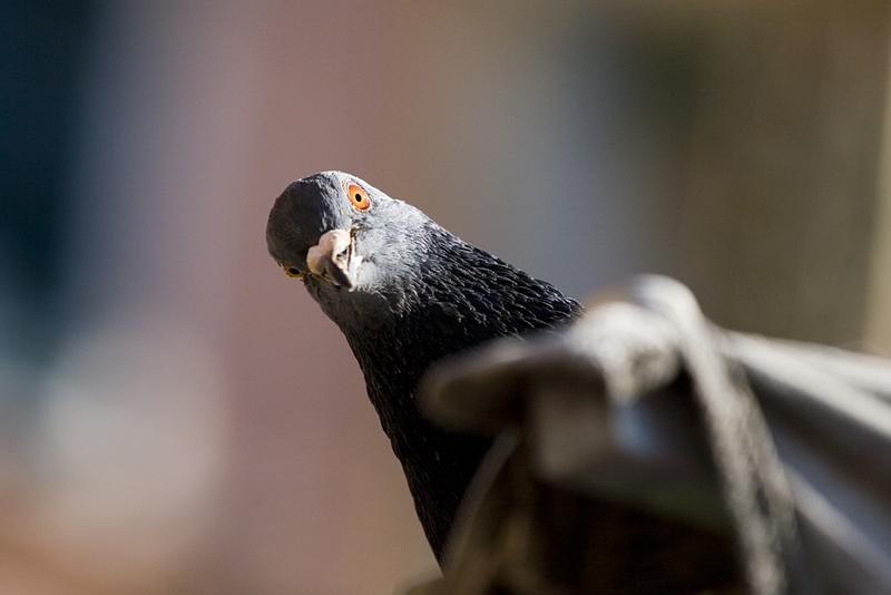 Il piccine mi piace. Personalmente avrei eliminato tutto lo sfuocato in primo piano facendo fare al piccione curioso un cucu dentro il rettangolo della foto dal basso a destra