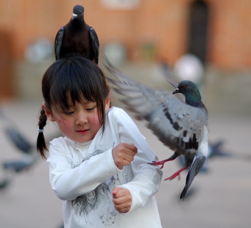 bellissima...la posa del piccione e della bimba poi.....e quello sopra dalla testa che sembra guardare quasi con aria divertita