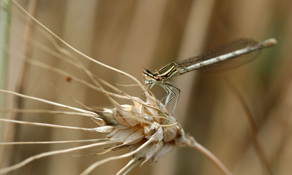 Bella, veramente molto. Mi piace la contrapposizione dello sfocato della libellula a destra e dello sfocato della spiga a sinistra, dà alla foto un effetto tridimensionale.