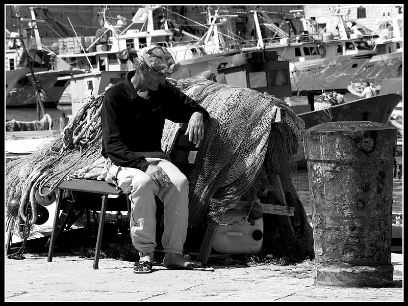 Considerando la forte illuminazione, direi che il b/n riesce a reggere abbastanza bene l'inevitabile elevato contrasto, anche se è un po' al limite nelle alte luci. Una resa leggermente più morbida sarebbe stata probabilmente più adeguata.