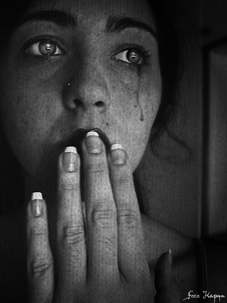 Non si tratta della foto di un monitor ne di una rivista,ho reso questo effetto"cartone" con la rielaborazione in pw. Nella foto volevo riprodurre una di quelle scene drammatiche e malinconiche da film