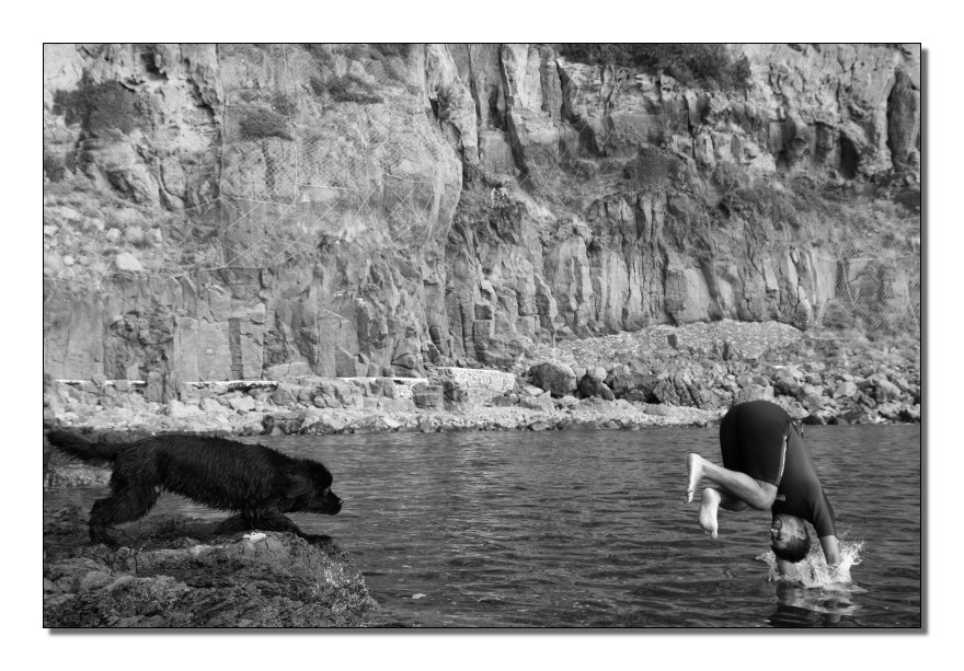 l'attimo del tuffo è stupendo e il barboncino ha una posa da star Ok!