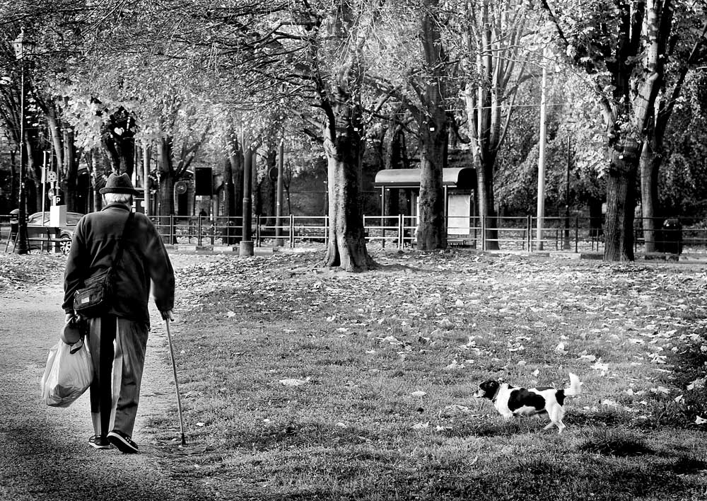 Una bella scena di vita quotidiana in città. Non ci sono i classici colori, ma l'autunno si sente tutto.